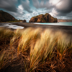 A howling wind at Whatipu Beach on New Zealand's North Island. Normally the aim is to get everything crisp and still. In this case, I loved the way the wind was represented by the blurred motion of the grass