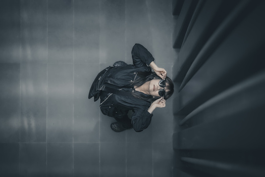 Sometimes changing the angle changes everything. I shot this from above to explore contrast, scale, and solitude in a narrow corridor of light and shadow. I love the way her sunglasses reflect a bit of confidence back at the lens—bold, curious, quietly cinematic.