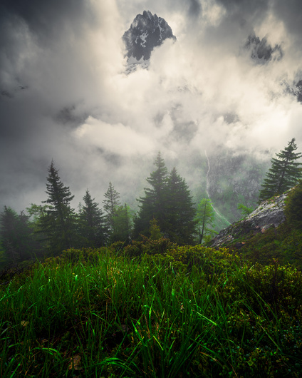 It was my first time at this location in the French Alps, and when I spotted this composition, I froze, jaw dropped at the moody beauty unfolding before me.