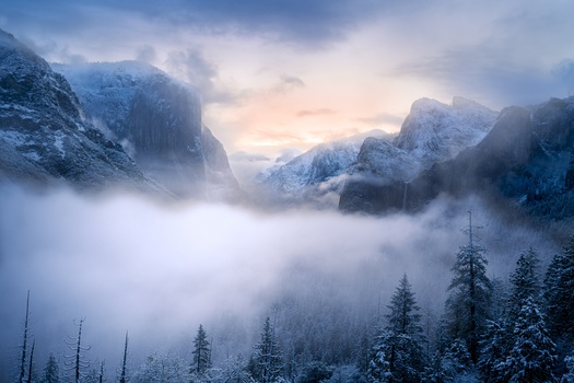 Pre-dawn at Tunnel View as a winter storm moves through the valley. I was lucky to get there when I did, as five minutes after this was taken, a fog bank rolled in and completely obscured the valley.