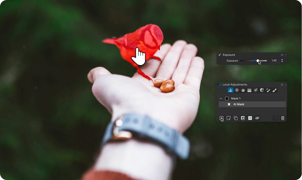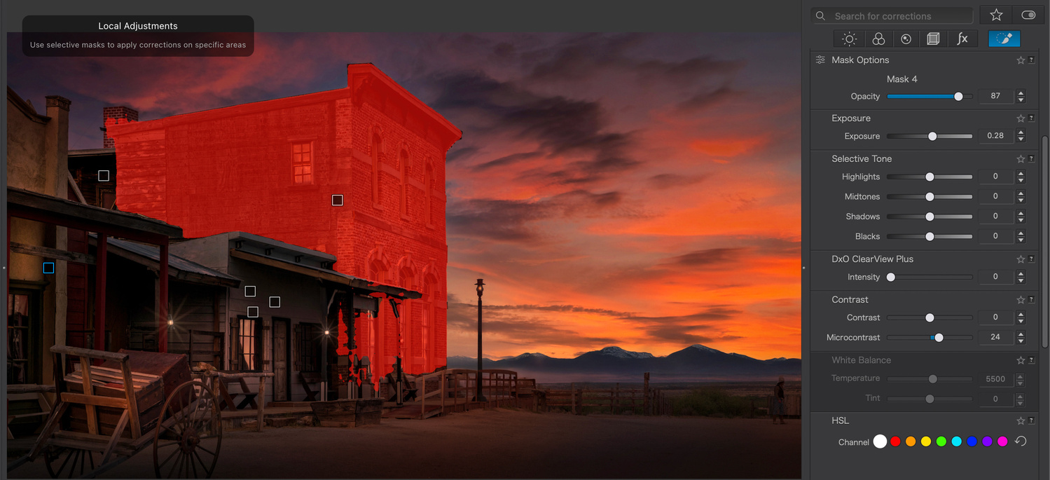 DxO's well-loved DeepPRIME noise reduction technologies and DxO’s exclusive Lens Sharpening Optimization can now be targeted using local adjustments.