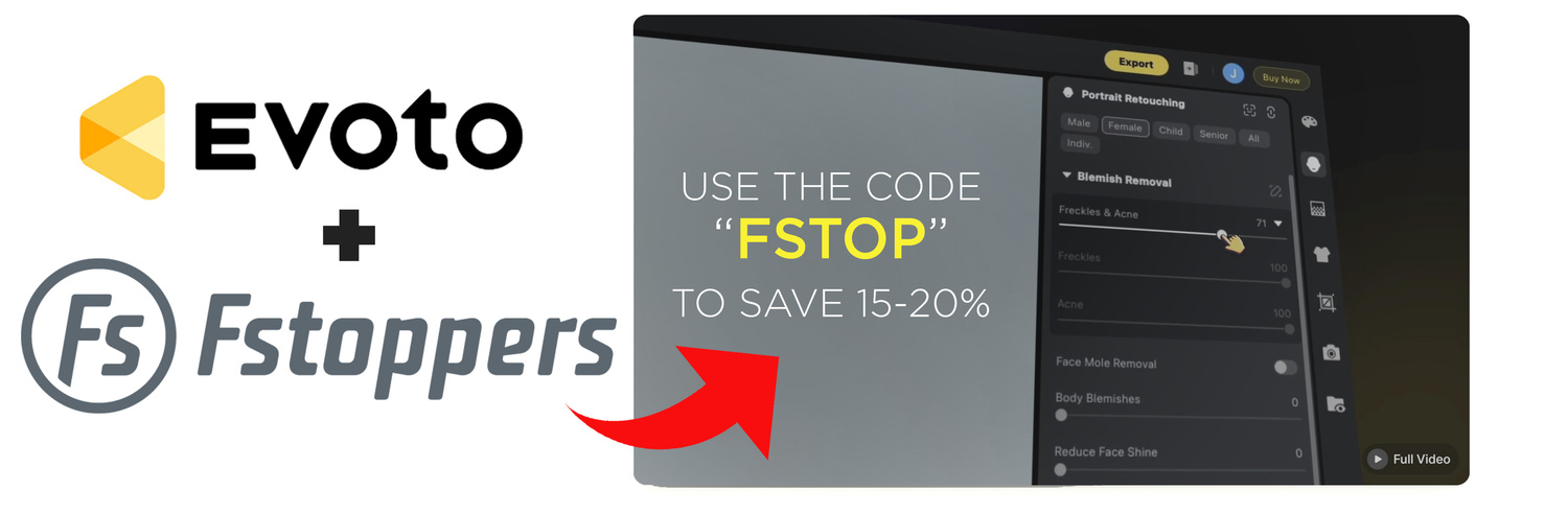 Furthermore, if you like what Evoto can do with your workflow or if you are already an Evoto user, you can use the discount code "FSTOP" to save 15% on an annual plan or 20% off 200 Pay-as-You-Go credits. Simply click on the link or photo above and add "FSTOP" to your order upon checkout.
