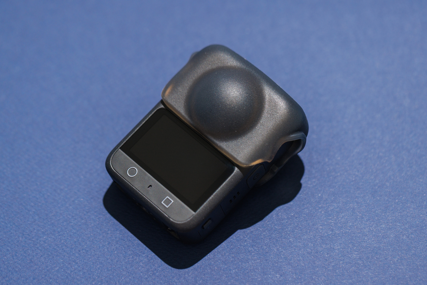 As with all 360 cameras, the dual fisheye lenses on the Osmo 360 are its most vulnerable components. They protrude prominently from the body to achieve that full‑spherical field of view, which also means they’re constantly exposed to potential damage. Using the camera with care is essential, and it’s good practice to keep the protective rubber lens cover on whenever it’s not in use. If you prefer better, all‑time protection, DJI also offers transparent lens protectors that you can leave on during shooting, adding peace of mind. Just make sure the corresponding setting is enabled in the menu to ensure proper image stitching. It’s also worth noting that the Osmo 360’s lenses aren’t easily user‑replaceable, so serious damage could mean a full service. On the upside, I found the lens coating holds up well against fingerprints, reducing the need for constant cleaning during regular handling.
