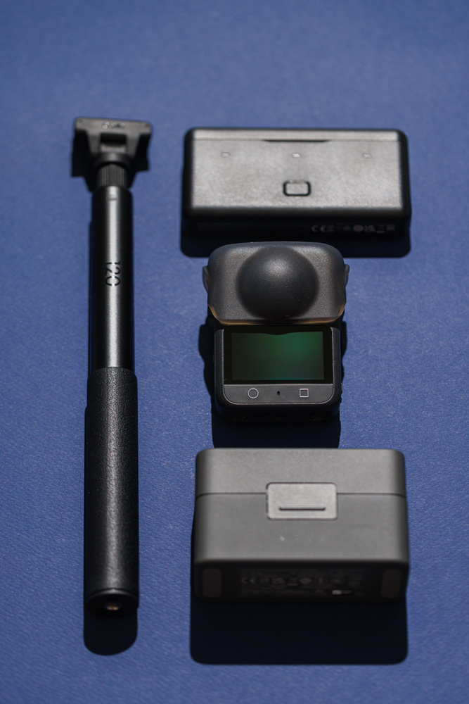 I would not have believed that this is all you need to start content creation—a compact 360° camera (Osmo 360) capable of filming all angles and a wireless mic (DJI Mic Mini) capable of receiving good audio. Adding their respective charging cases gives you enough power for extended hours of filming. Its ease of operation makes it a rather transparent device, outputting the idea we have in our brain with no boundaries. Being such a compact size also makes it ideal for placing in tight or unusual locations—high angles, low floor shots, poles, corners. The Osmo 360’s 2-inch touchscreen is reliable and bright enough to preview framing even in backlit conditions, making it a standalone device. While operation control with the app is not necessary, it is highly recommended for easier and more seamless control, especially when the camera is in an inconvenient location. My favorite way of using the camera is with the battery extension rod, as it allows me to control the camera from an extended length while not needing to rely on the app.
