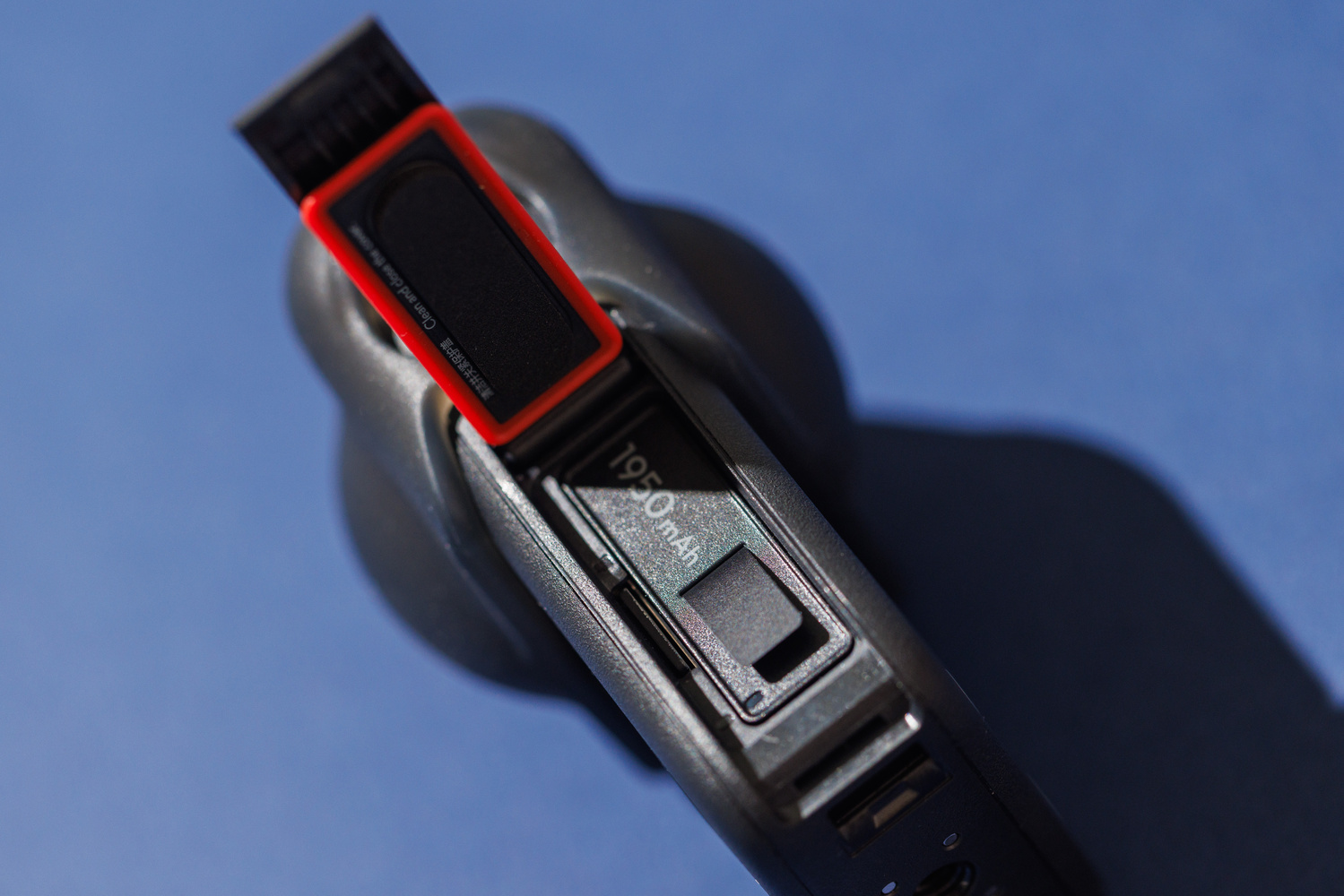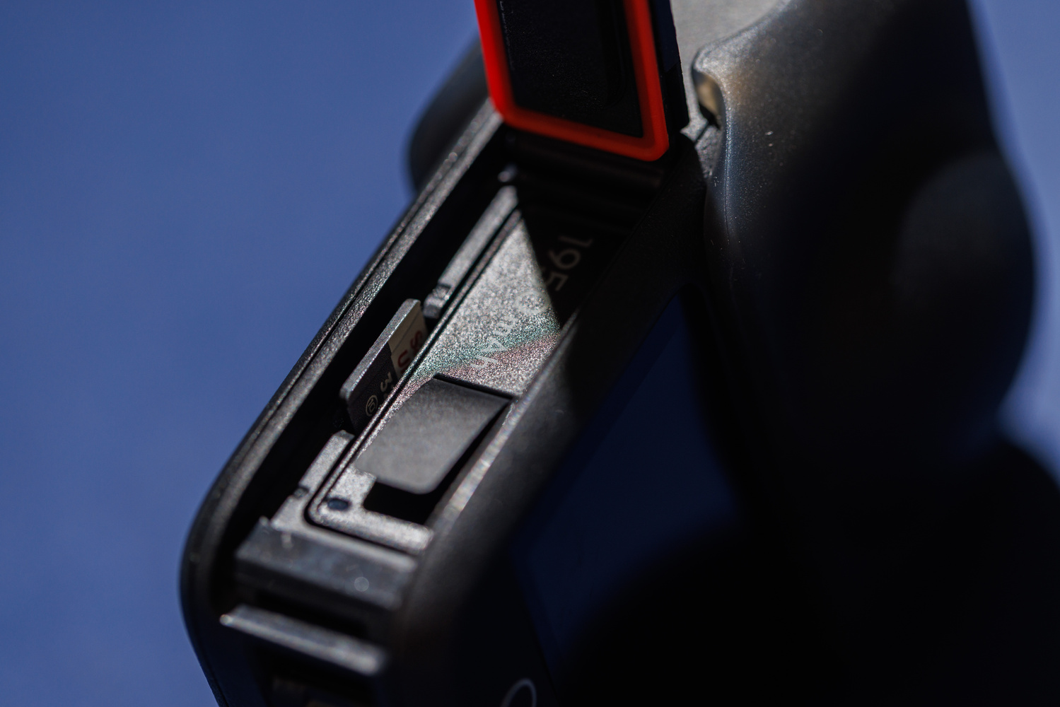 Battery access uses a dual‑locking sliding mechanism for extra security. The micro SD card slot is inside the battery compartment, which makes removal tricky without removing the battery. I would have preferred it behind the USB‑C port door—it would make file transfers much simpler. That said, you can transfer files via USB‑C, so unless your card is full and needs replacement, there’s little need to remove it.