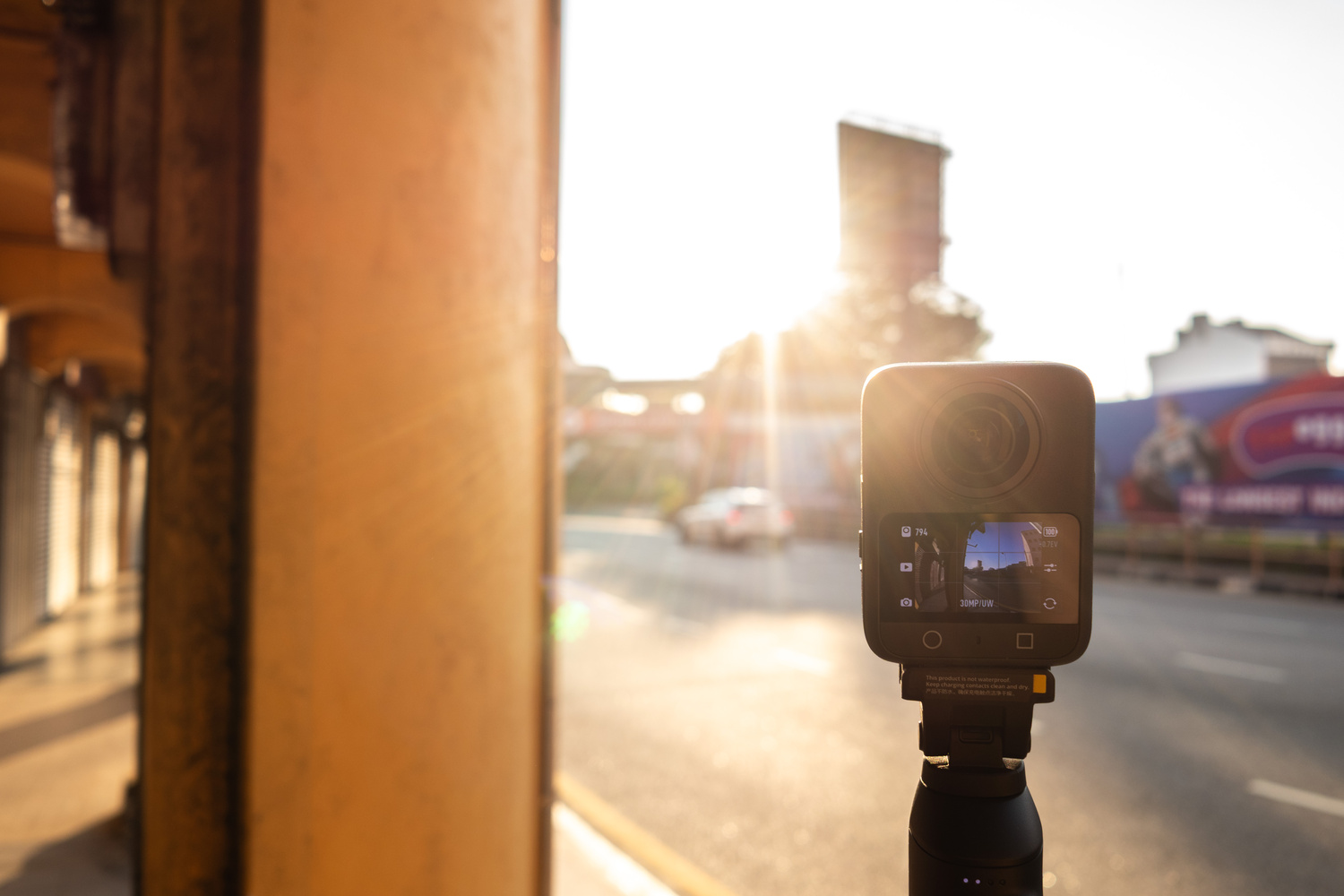 Being a photographer first, I gravitated toward testing the photo capabilities, especially when it is such a small and unassuming camera. Despite being a camera that breaches boundaries, the results gave me mixed feelings. The raw output from the single-lens 12 MP photo mode with standard POV looks underwhelming, comparable to a smartphone output from more than a decade ago. I suspect this is due to the massive cropping from a 180° fisheye view to a "normal" view and edge stretching, which causes severe loss of image quality. This is also probably why the single-lens 30 MP wide-angle mode fares slightly better. There is also a noticeable shutter lag, and no way to set the focus point. While it is not usually needed for a camera this wide, focus shifts are quite visible with closer subjects. While the image from the single-lens mode may leave room to improve, the 120 MP 360° image is pretty good with no weird exposure variance and no obvious stitching error if there are no close-up subjects, though they are only available in JPEG format. That said, there is still something liberating about photographing with such a camera. While it was not designed for it, it removes some pressure from the creative process and invites experimentation we might normally avoid, even if the results are imperfect.