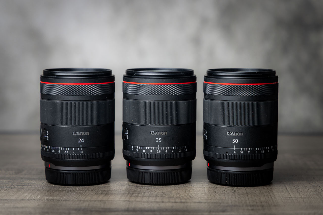 The RF 24mm f/1.4L VCM, RF 35mm f/1.4L VCM, and RF 50mm f/1.4L VCM have the same size and weight. This allows for fast lens changing without the need to rebalance a gimbal with each change. The filter diameter is also the same, which is convenient when using variable neutral density filters.