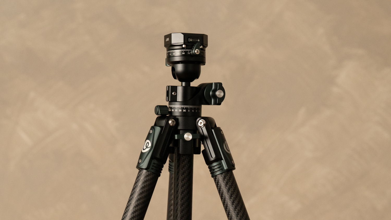 Above these locks and turning points is an inverted-style ball head that is controlled by another curved clip lock that wraps around the body of the head. Above this is another knob for a more controlled panning motion that is independent of the level of the legs and central joint. On top of that is a button that allows for a quick release of the camera mounting plate.