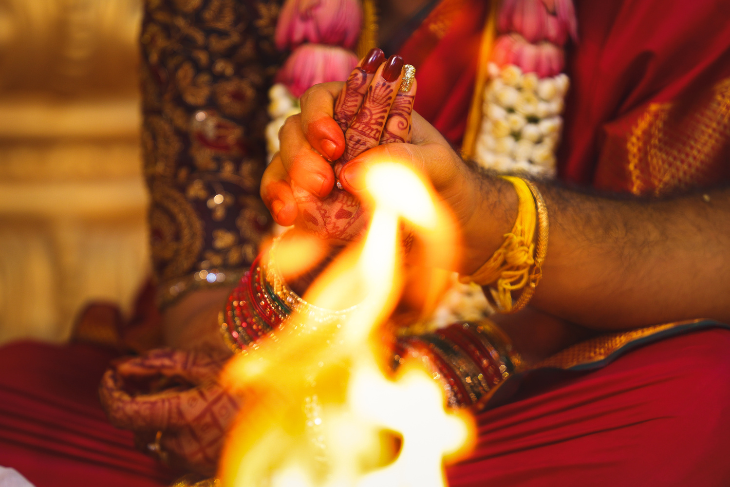This was an Indian brahmin wedding, during the rituals the pandit(priest) asked the groom to hold the bride's hand, I found it interesting and captured it with fire as my foreground conveying that they are taking an eternal vow fire as the witness