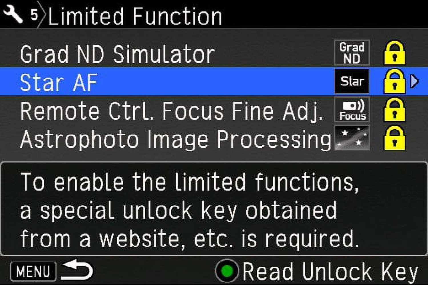 Ricoh says, "Normally, you would pinpoint on a star that is the easiest to bring into focus, then compose the image. With the Star AF, however, you can compose the image first, then focus on stars using the camera’s autofocus system." It’s not instant—expect a few seconds—but it’s far faster and, yes, even more precise than manual focusing.